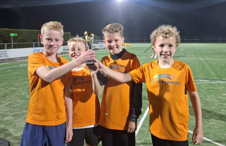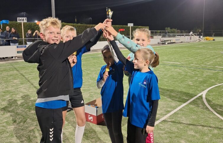 Alle winnende teams kregen een mooie beker. gesponsord door Nienhuis Sport Marum, die een mooie plek op school mag krijgen.