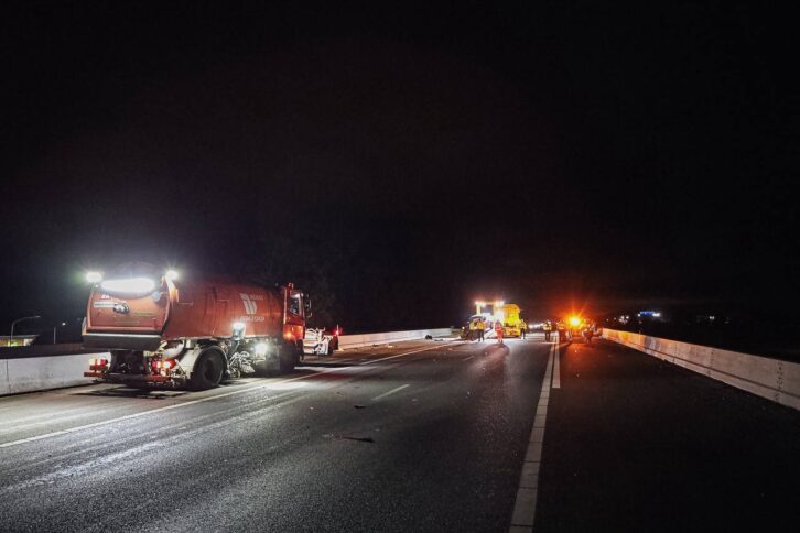 De rijbaan richting Drachten lag vol met brokstukken en modder. Een aannemer werd ingezet om het wegdek schoon te maken, terwijl een bergingsbedrijf de beschadigde voertuigen afvoerde. De A7 richting Drachten werd volledig afgesloten voor verkeer.