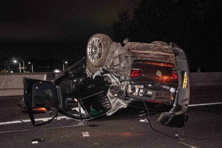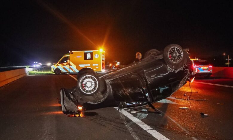 Volgens de politie botsten eerst een personenauto en een busje op elkaar. Kort daarna raakte een andere personenauto door nog onbekende oorzaak een vangrail, waarna het voertuig over de kop sloeg. Meerdere eenheden van politie en een ambulance kwamen ter plaatse. Het ambulancepersoneel ontfermde zich over de slachtoffers. Of er personen naar het ziekenhuis zijn vervoerd, is onbekend.