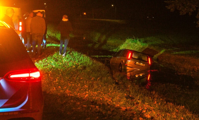 In de auto zat één vrouw, zij kon zelfstandig uit het voertuig komen en bleef ongedeerd, al had ze wel natte voeten. De politie en een bergingsbedrijf waren ter plaatse. De weg is volledig afgesloten voor het verkeer vanwege de berging van het voertuig.