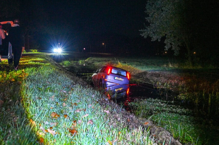 In de auto zat één vrouw, zij kon zelfstandig uit het voertuig komen en bleef ongedeerd, al had ze wel natte voeten. De politie en een bergingsbedrijf waren ter plaatse. De weg is volledig afgesloten voor het verkeer vanwege de berging van het voertuig.