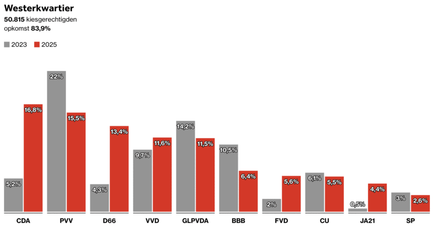 De uitslagen laten zien dat de politieke verhoudingen in Westerkwartier flink zijn verschoven, met name door de opmars van het CDA en de terugval van PVV en BBB.