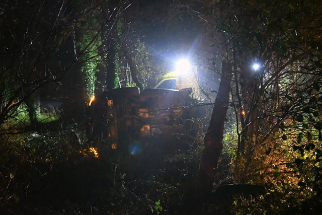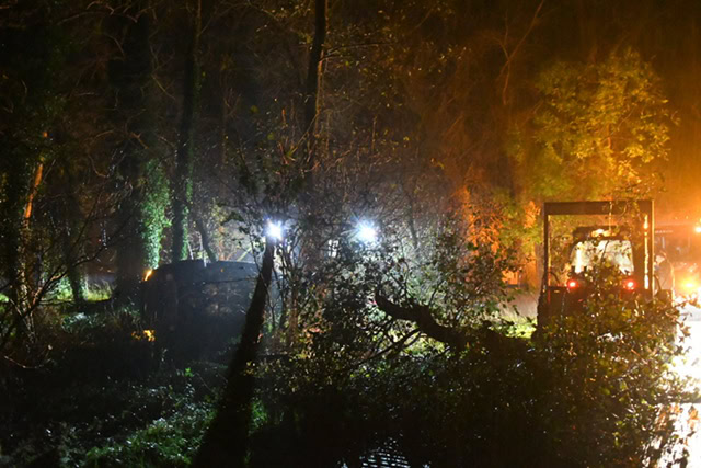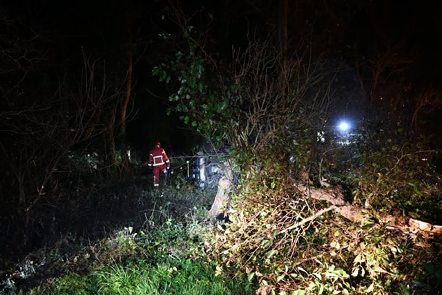 De bestuurster die voor zover bekend als enige in de auto zat, verloor door onbekende oorzaak de macht over het stuur, en belande vervolgens met haar auto op de zijkant in de bosjes. Omwonenden die de klap hoorden, hebben vervolgens de hulpdiensten via 112 gewaarschuwd. Een boom die omver werd gereden, kwam vervolgens deels op de weg terecht. Iemand met een tractor heeft de boom later van de weg verwijderd.