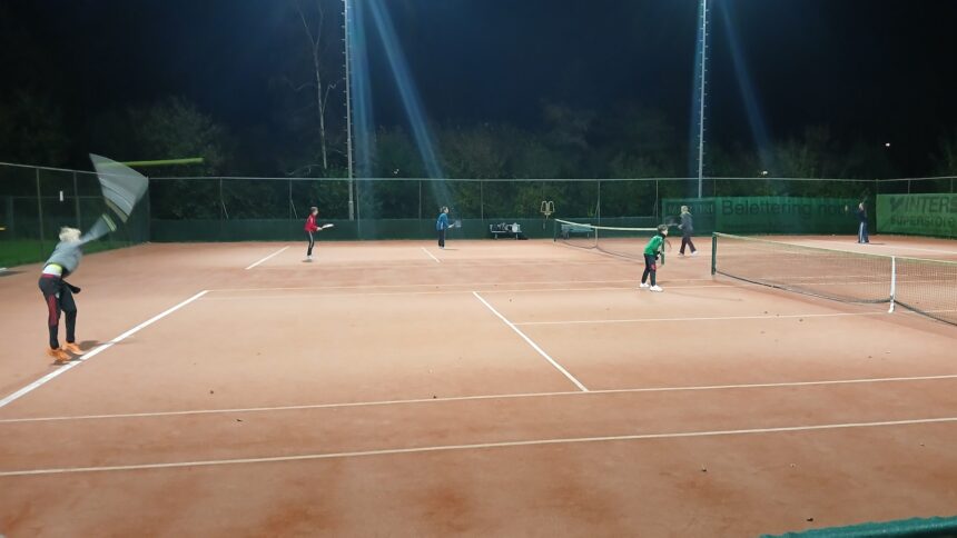 Leek – Zaterdagavond 22 november maakten 22 jeugdtennissers er een gezellige tennisavond van op het tennispark van TC Nienoord. Voor de toeschouwers een frisse avond, maar de jeugd had daar geen last van.