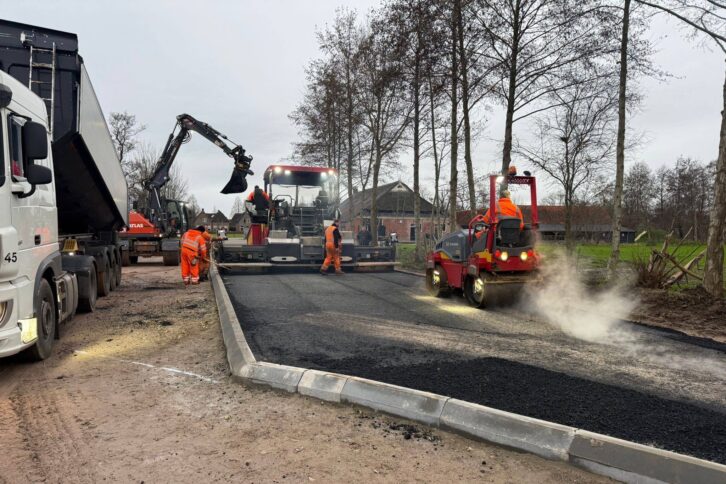 Tolbert – Op het terrein achter de Cazemierboerderij is dinsdagochtend een belangrijke stap gezet in de realisatie van de nieuwe ijsbaan in Tolbert. Met groot materieel is de eerste asfalt laag aangebracht, een essentiële basis voor de toekomstige schaatsvloer.