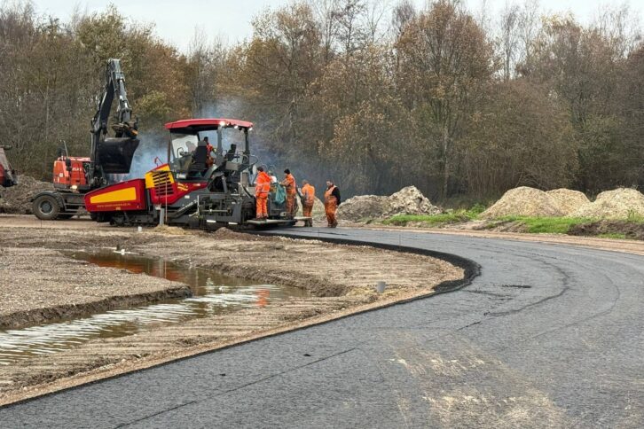 Belangrijke mijlpaal bereikt; eerste asfalt laag voor nieuwe ijsbaan Tolbert gelegd