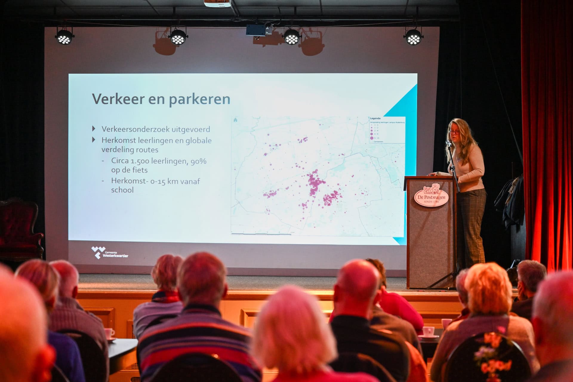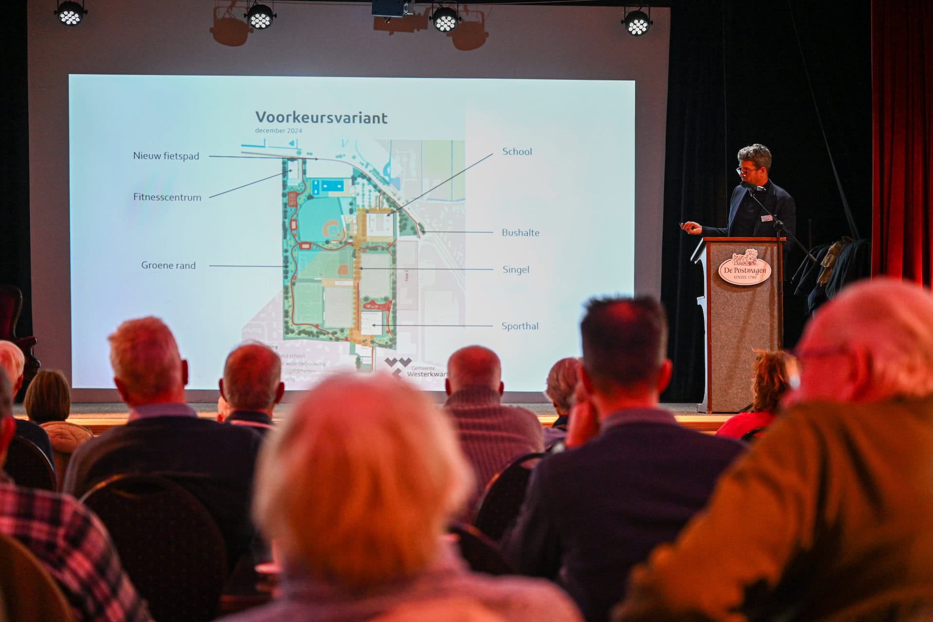 In tegenstelling tot de eerdere twee informatiebijeenkomsten, waar bezoekers konden inlopen, koos de gemeente dit keer voor een centrale presentatie. Ambtelijk projectleider Jakob Alkema opende de avond om 19.00 uur, waarna het programma doorliep tot 21.00 uur. De presentatie is hier te zien.