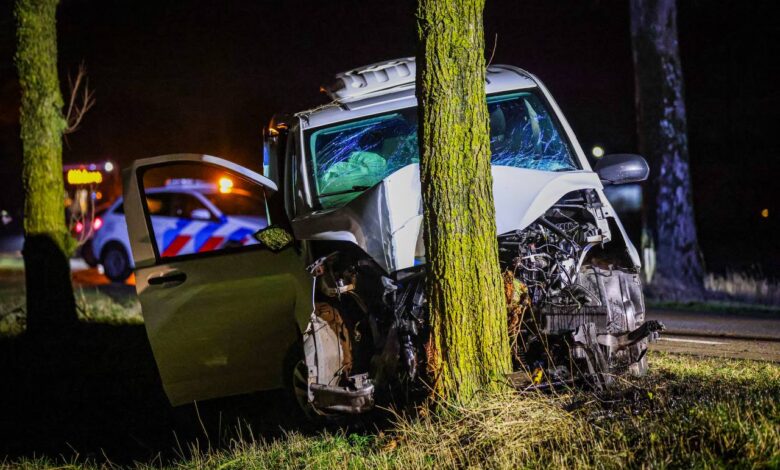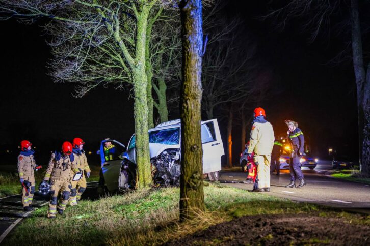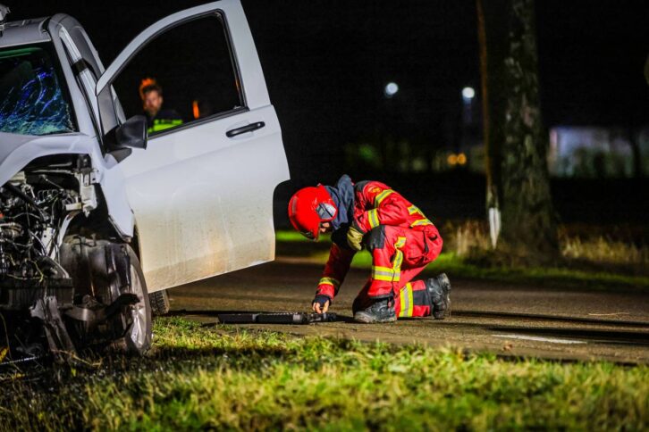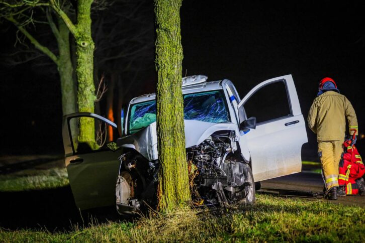Den Ham – Een busje is maandagavond frontaal op een boom gebotst op de Sietse Veldstraweg (N983). Hierbij raakte de bestuurder van het bestelbusje gewond.