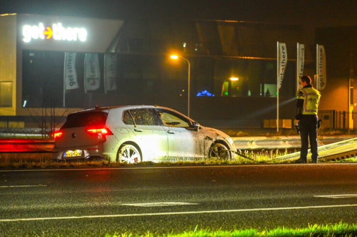 Een bergingsbedrijf heeft de auto afgesleept. De beschadigde vangrail wordt naar verwachting later hersteld.