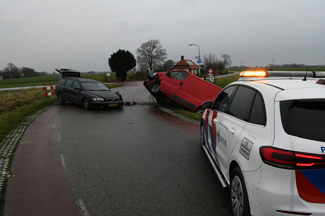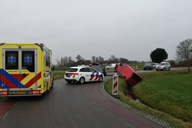Bij de aanrijding kwam het busje achterwaarts in de sloot terecht, de andere auto kwam tot stilstand op de rijbaan. De bestuurders van de voertuigen, twee mannen uit de gemeente Westerkwartier, zijn onderzocht door ambulancepersoneel. Vervoer naar een ziekenhuis bleek niet noodzakelijk.