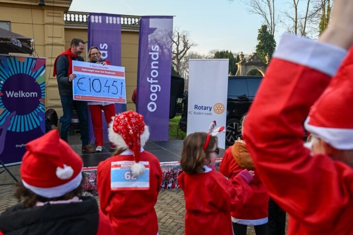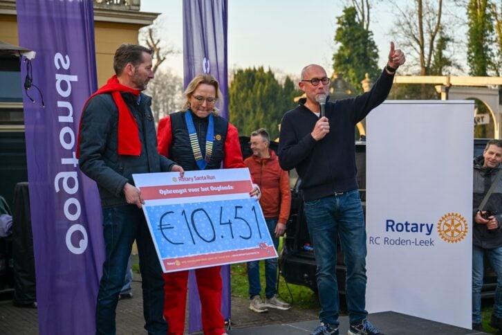De Rotaryclub Leek-Roden organiseerde het feestelijke hardloopevenement op Landgoed Nienoord. “Super gaaf dat het totale bedrag bovenverwachting is”, zei Angelique Kelly, voorzitter van de Rotaryclub Leek-Roden. “Een recordaantal van ruim 650 lopers, het weer helpt ook zeker mee vandaag. Als rotary vrijwilligers proberen we iets goeds neer te zetten en zijn we enorm trots dat dit het resultaat is van het harde werken.”