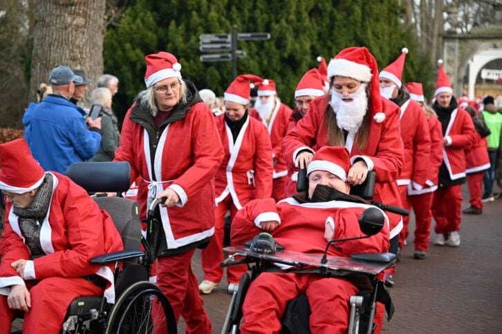 Het stralende weer zorgde voor een feestelijke sfeer op het landgoed. Veel familieleden en kennissen kwamen naar Nienoord om de lopers aan te moedigen. De deelnemers konden kiezen uit een wandeling van 2,5 kilometer of hardlooproutes van 5 en 10 kilometer, allemaal in kerstpakken door de betoverende omgeving van het landgoed.