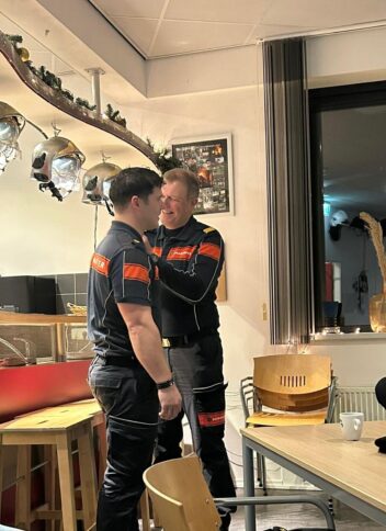 Tijdens een oefenavond werden de onderscheidingen uitgereikt. Korpschef Erik Huisman reikte de mannen hun bijbehorende onderscheiding uit. Hiermee is de opleiding officieel afgerond en kunnen Klaas en Gijs volledig meedraaien bij de brandweerpost.