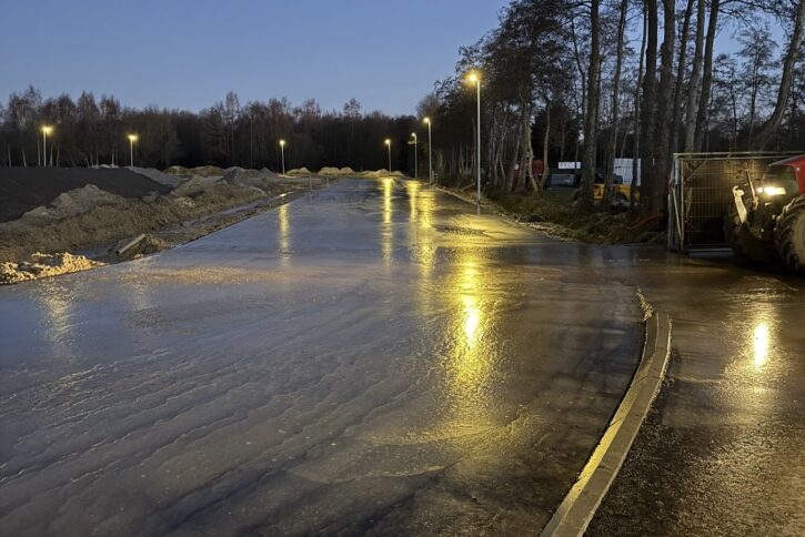 Sinds gistermiddag is er hard gewerkt om op het asfalt water te sproeien met een grote tank achter een trekker. De hele nacht is doorgewerkt waardoor er nu 1 centimeter ijs ligt. Dit betekend dat de ijsbaan vandaag, Eerste Kerstdag, om 9.30 uur voor het eerst open gaat voor publiek.