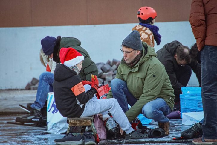 Vanaf het moment van openen maakten vele schaatsliefhebbers, van jong tot oud, dankbaar gebruik van de mogelijkheid om de schaatsen onder te binden. Voor veel mensen voelt het als een bijzonder moment: eindelijk weer schaatsen in het eigen dorp, en dan ook nog op een gloednieuwe locatie.