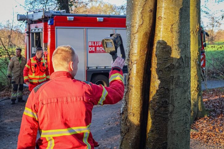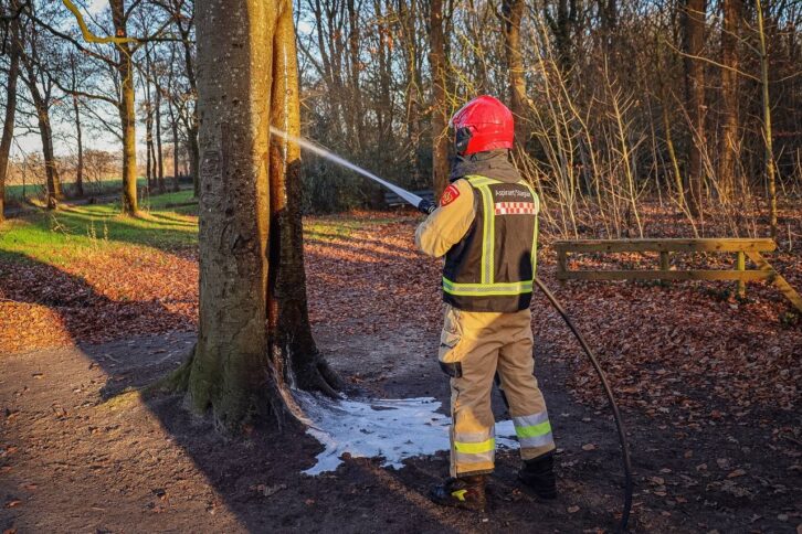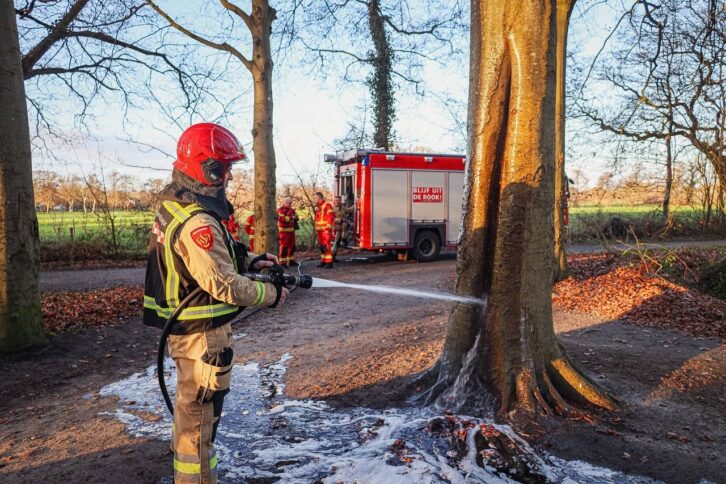 Leek – Aan het Ommetje in het bos van Nienoord in Leek is de brandweer dinsdagmiddag gealarmeerd voor een buitenbrand. Ter plaatse bleek het te gaan om een brand in een boom.