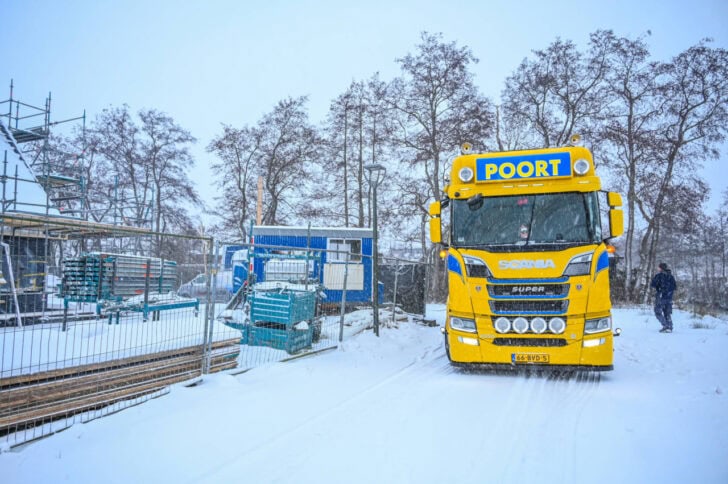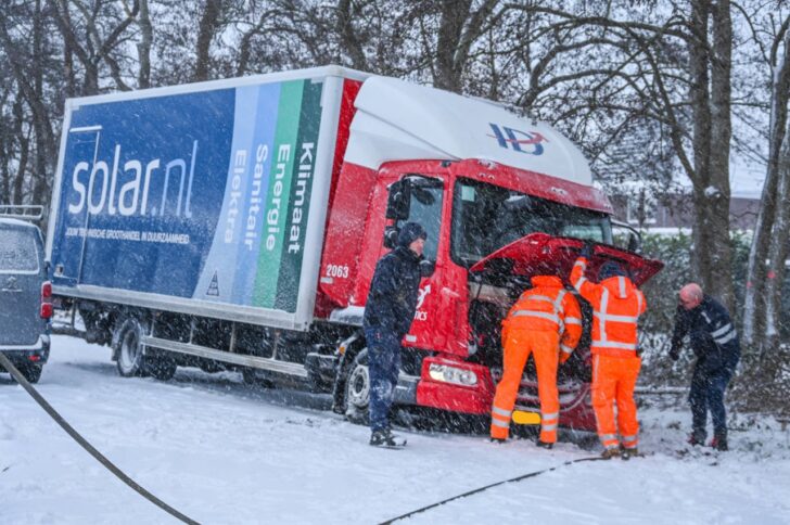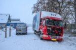 Door de besneeuwde en gladde weg had de chauffeur beperkt zicht op het wegdek. Tijdens het manoeuvreren raakte de vrachtwagen van de rijbaan en gleed deze in de greppel langs de weg. De chauffeur probeerde samen met installateurs die in de woning aan het werk waren het voertuig weer los te krijgen, maar dit bleek tevergeefs. Daarop werd een zware vrachtwagenberger van een bergingsbedrijf ingeschakeld.