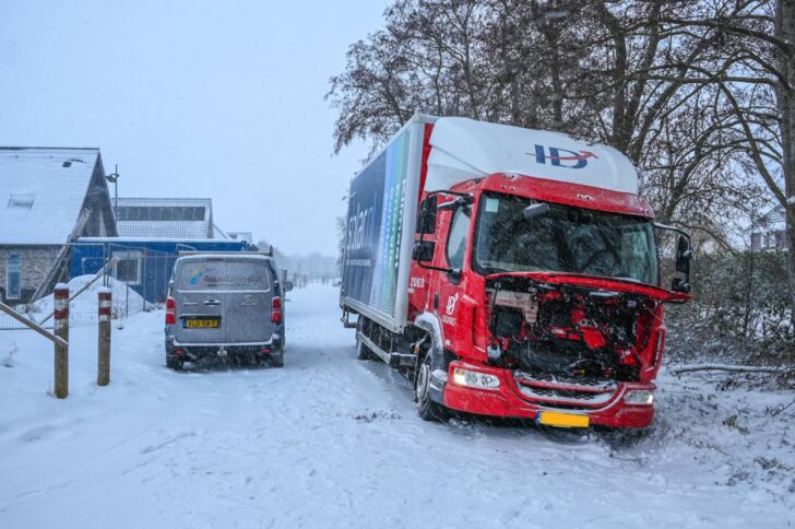 Leek – Aan de Pijlkruid in Leek is woensdagochtend een vrachtwagen in een greppel terechtgekomen. Het voertuig was onderweg om bouwmaterialen af te leveren bij een woning in aanbouw in de wijk Oostindië.
