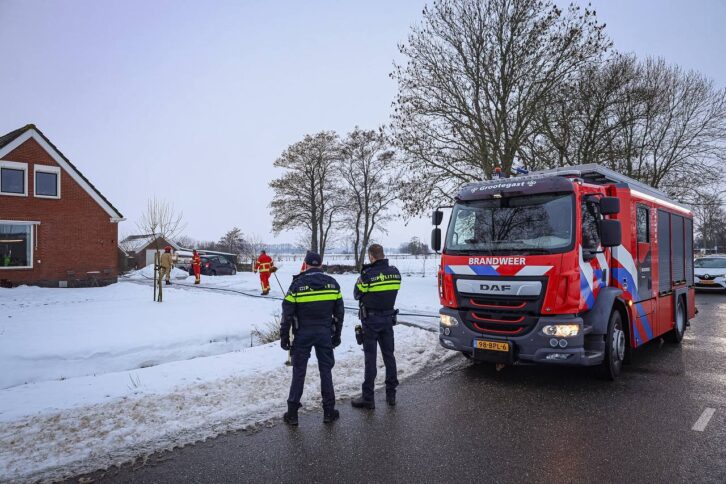 Boerakker – De brandweer van Grootegast is donderdagochtend uitgerukt voor een brand in een garage aan de Bakkerom in Boerakker. In de garage stonden twee containers in brand.