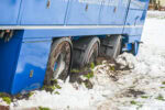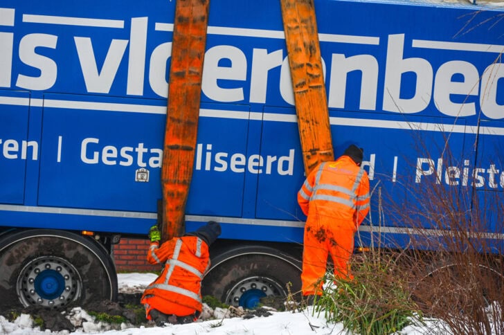 Door de besneeuwde en gladde weg begon de trailer te glijden, waarna deze naast de weg terechtkwam en vast kwam te zitten. Met meerdere trekkers van een loonbedrijf uit de buurt is geprobeerd de in totaal ruim 50 ton vrachtwagen met de volgeladen trailer los te trekken, maar dit bleek niet mogelijk.