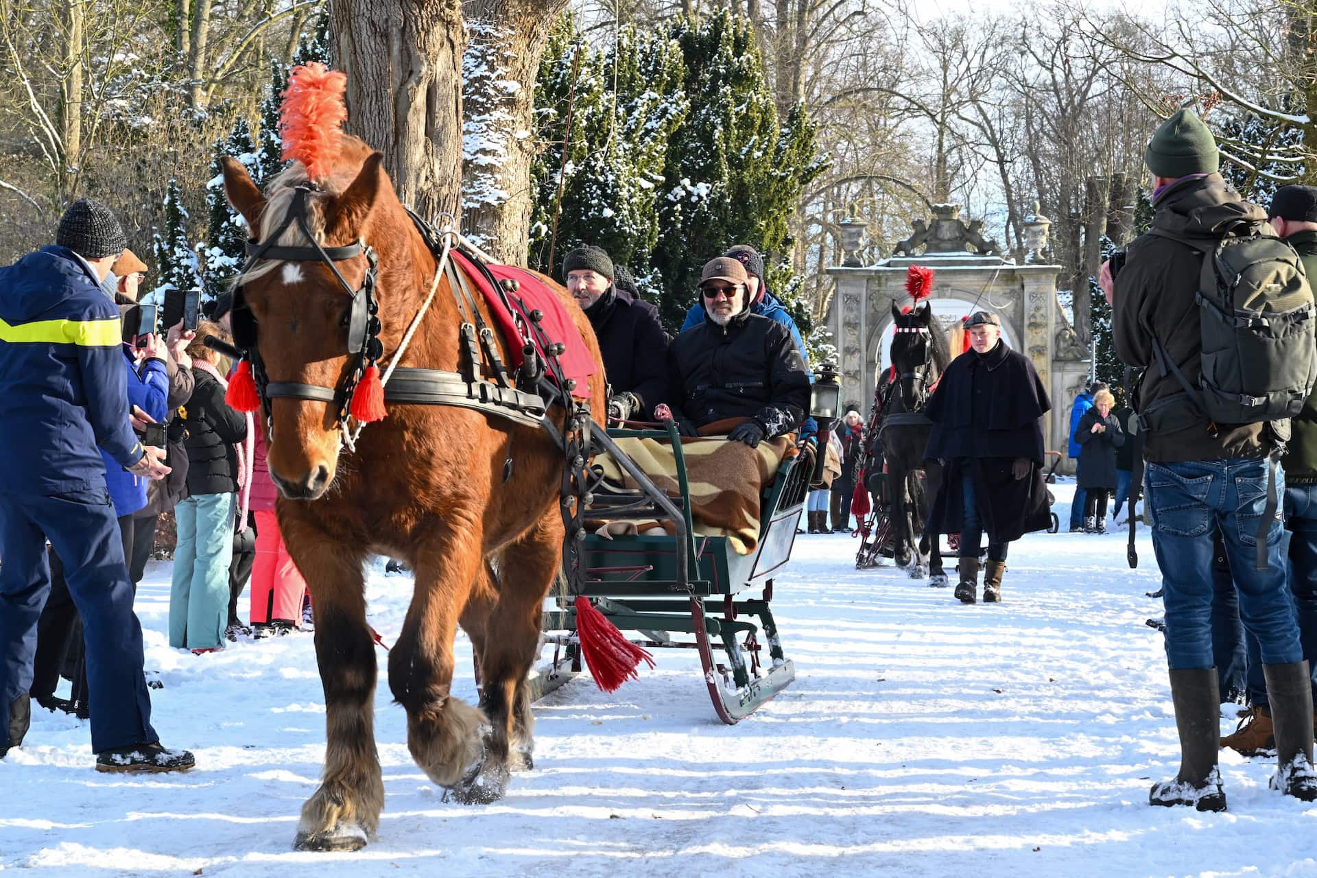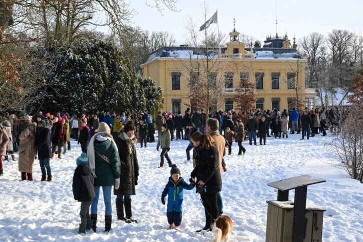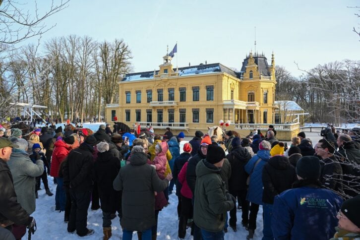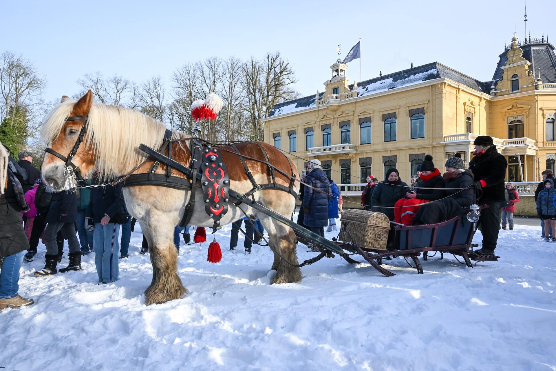 Leek – Vereniging Rijden en Glijden organiseerde zondagochtend 11 januari een tocht met 6 aangespannen sleden op landgoed Nienoord. Bij een stralende winterochtend met een temperatuur van ongeveer -4 graden en voldoende sneeuw van afgelopen dagen vond de bijzondere tocht plaats met bekijks van ruim 1500 bezoekers uit de hele regio en daarbuiten.