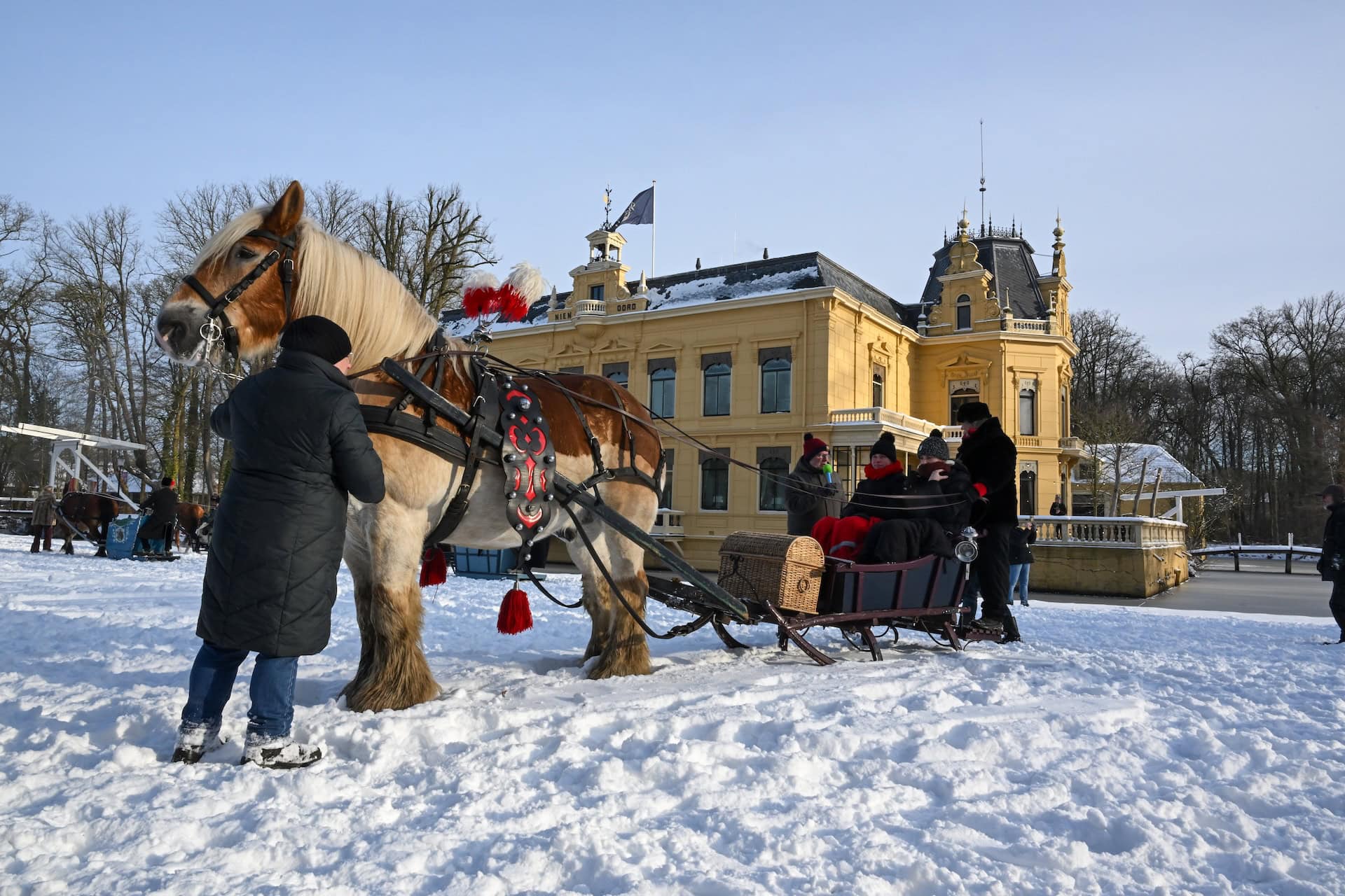 Museum Nienoord benaderde aanvankelijk particulieren, maar de meesten werken of gaan naar school. Lange ritten met paarden in trailers waren de afgelopen dagen te risicovol, dus bleven ze dichtbij huis. Donderdagavond belde de Vereniging Rijden en Glijden afdeling Noord dat zij wel een aantal leden bij elkaar konden brengen en dat zondag geschikt leek. De ochtend ws gekozen omdat de sneeuw dan op zijn best is, vlak na de koude nacht.