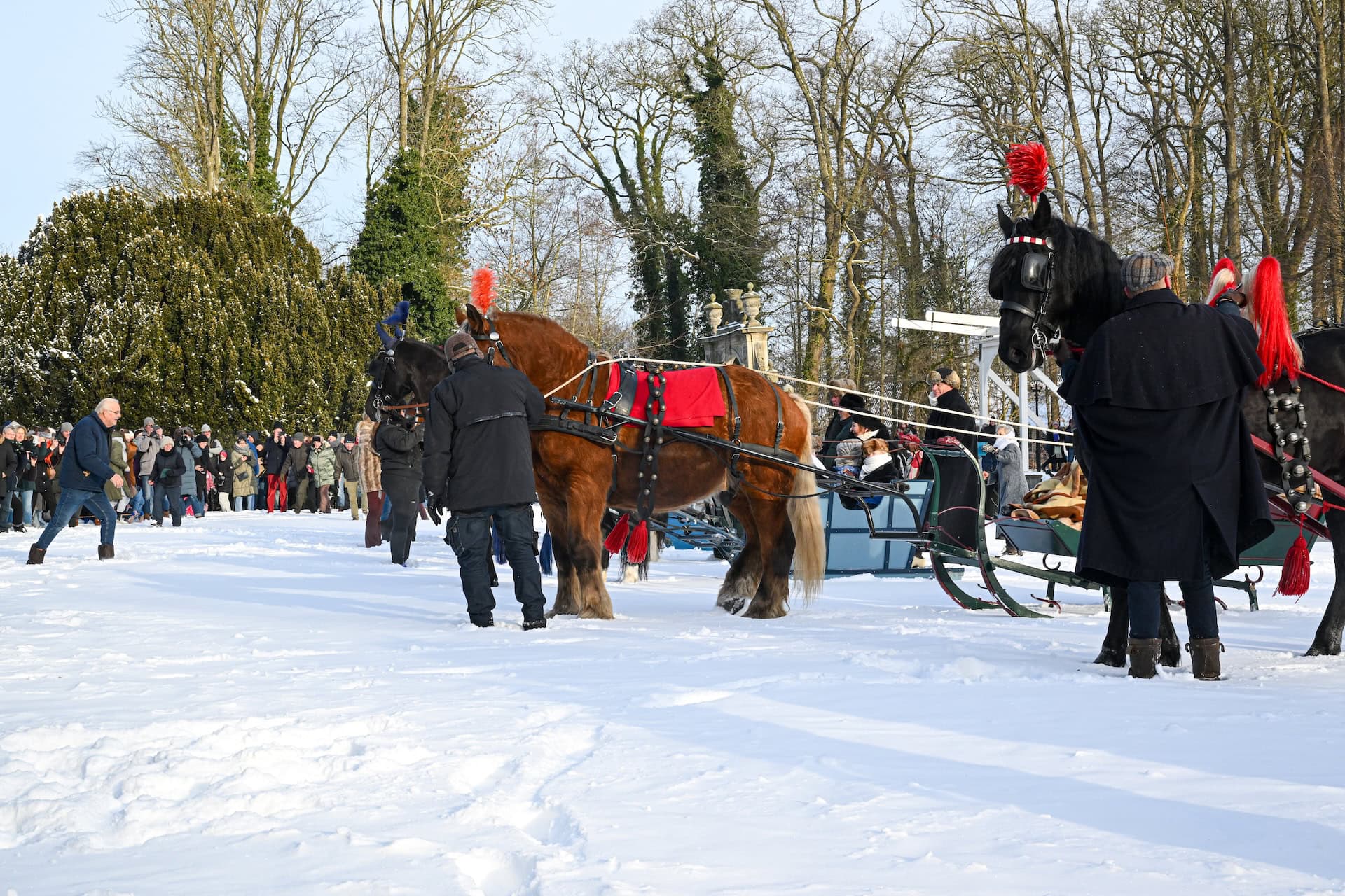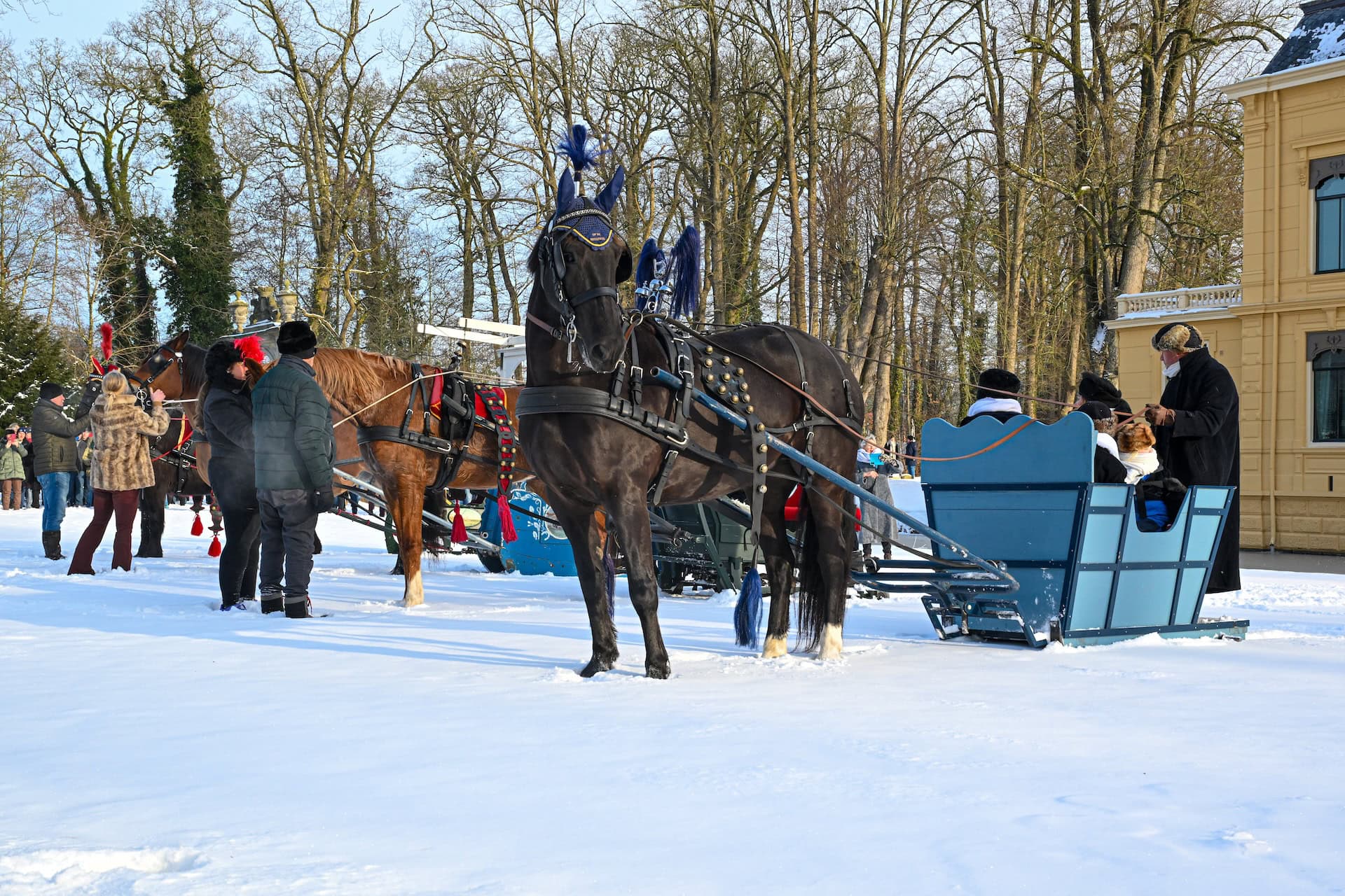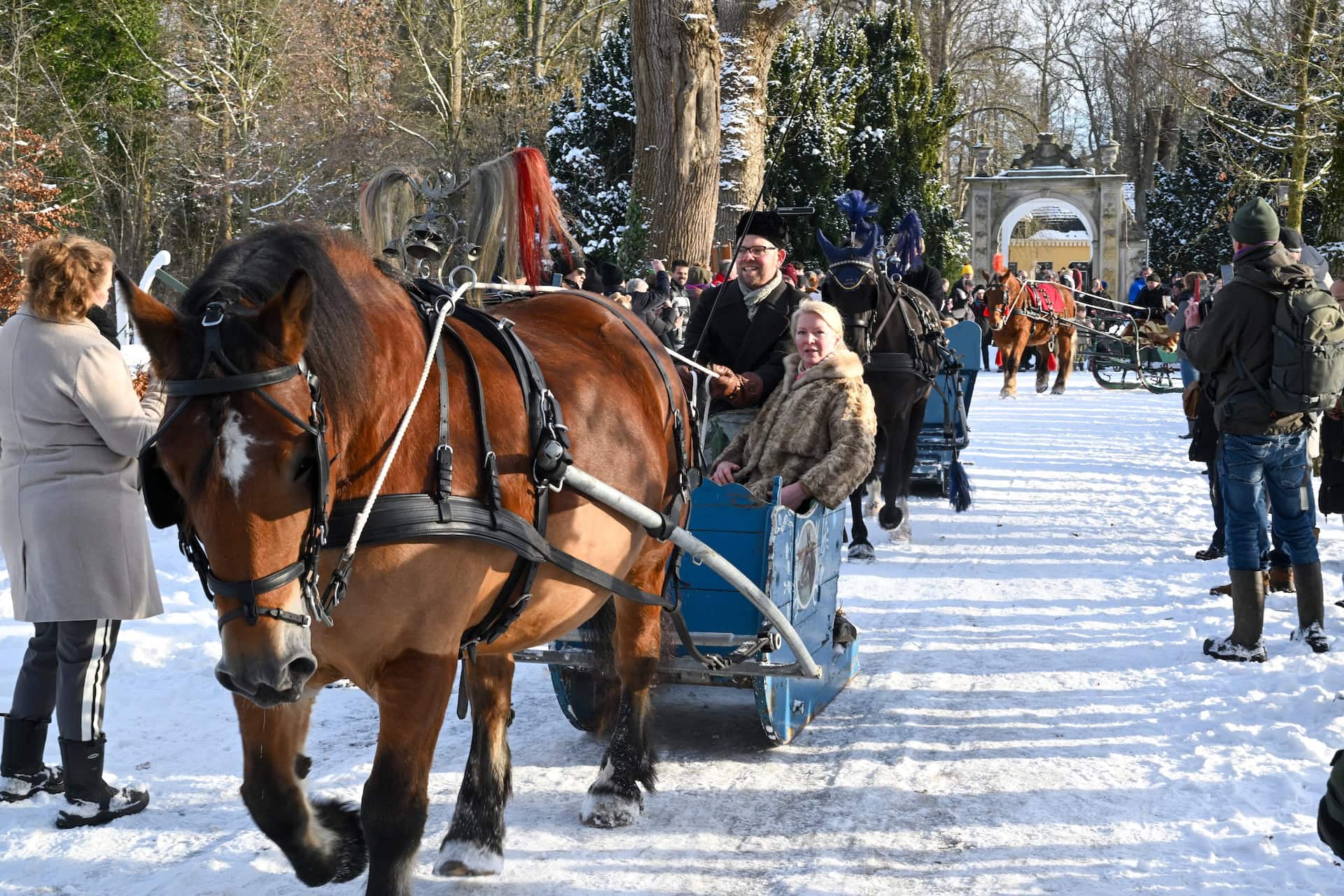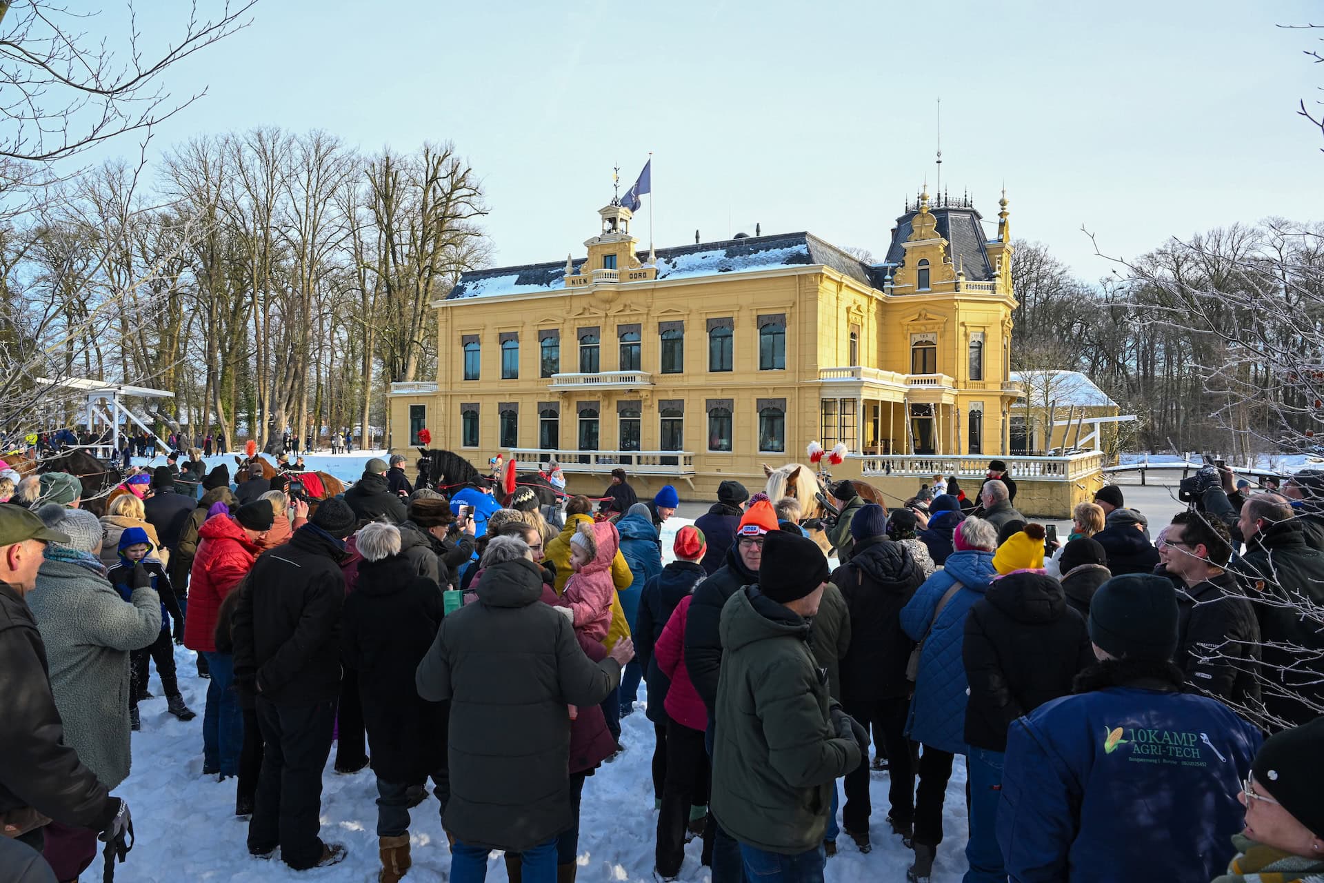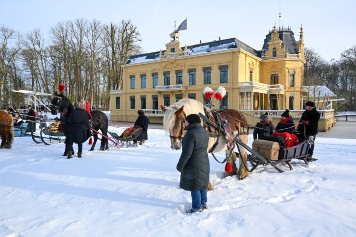 Nienoord heeft zo’n 50 museale sleden. Met de betrokken mensen, trekdieren, kleding en aanspanningen erbij werden de ensembles weer compleet en kwam alles tot leven, met zelfs de geur van paarden en het gelui van bellen.