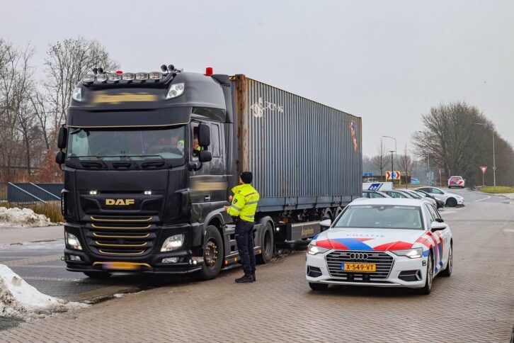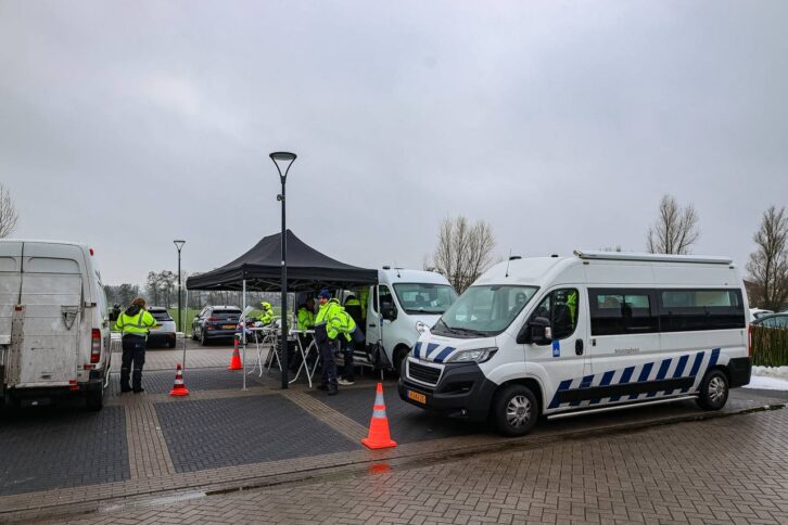 Leek – De politie houdt dinsdag een grootschalige verkeerscontrole bij de P+R in Leek. Motorrijders van de politie en voertuigen van Team Verkeer halen automobilisten, vrachtwagens en bestelbusjes van de snelweg en omliggende routes om deze te controleren.
