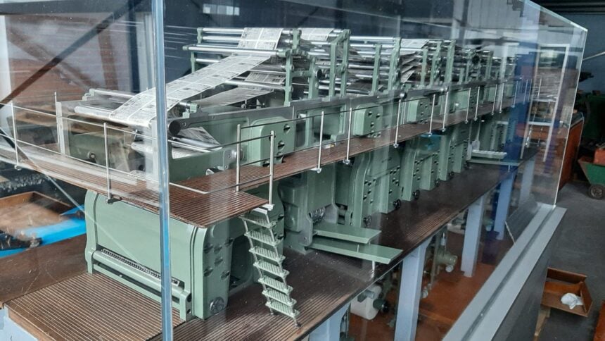 Met dergelijke persen werden tot in de jaren tachtig dagbladen gedrukt. Van deze indrukwekkende machines is echter vrijwel niets bewaard gebleven. Voor het museum vormt de maquette daarom een waardevolle aanwinst, omdat hiermee het verhaal van de geschiedenis van de krantendruk alsnog goed verteld kan worden.