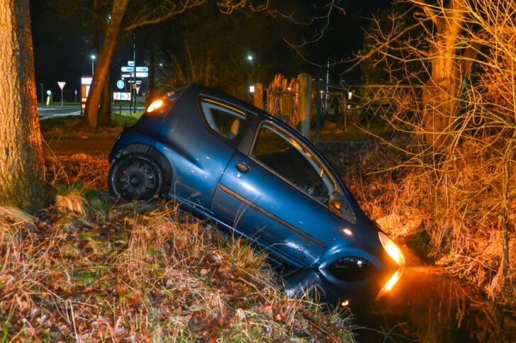 Omstreeks 03.10 uur ging het mis, door nog een onbekende oorzaak raakte een automobilist de controle kwijt over zijn auto en raakte van de weg. Nadat de auto van de weg raakte kwam het met zijn neus in een naastgelegen sloot tot stilstand. De bestuurder kon op eigen kracht het voertuig verlaten en kwam met de schrik vrij.