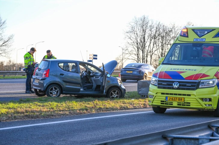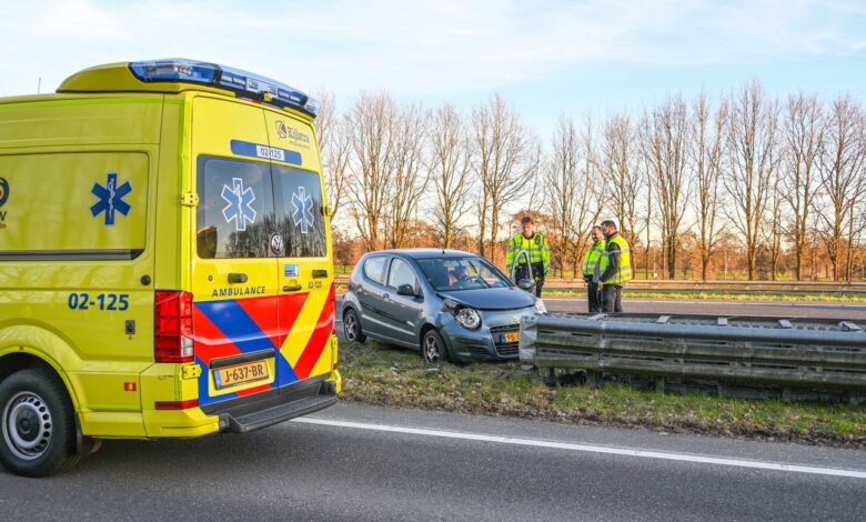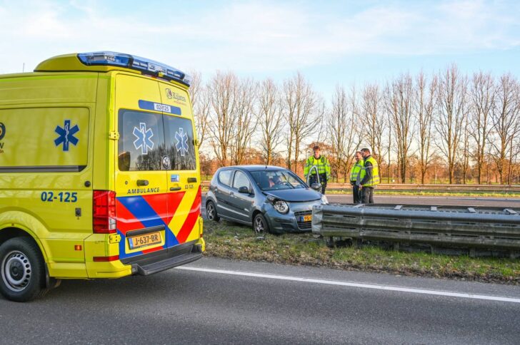 De bestuurder was door een nog onbekende oorzaak van de rijbaan geraakt. Het voertuig kwam tegen de vangrail tot stilstand. De bestuurder werd in de ambulance gecontroleerd, vervoer naar het ziekenhuis bleek niet nodig.