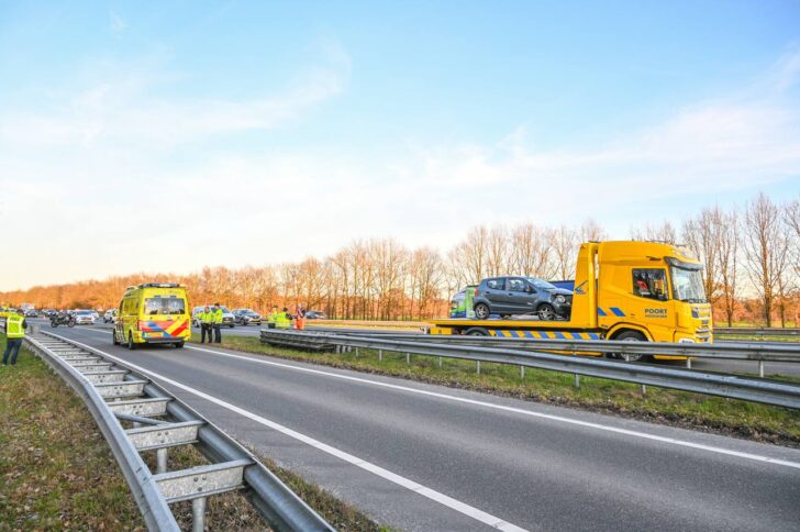 Auto botst tegen vangrail op A7 bij Midwolde, lange file als gevolg