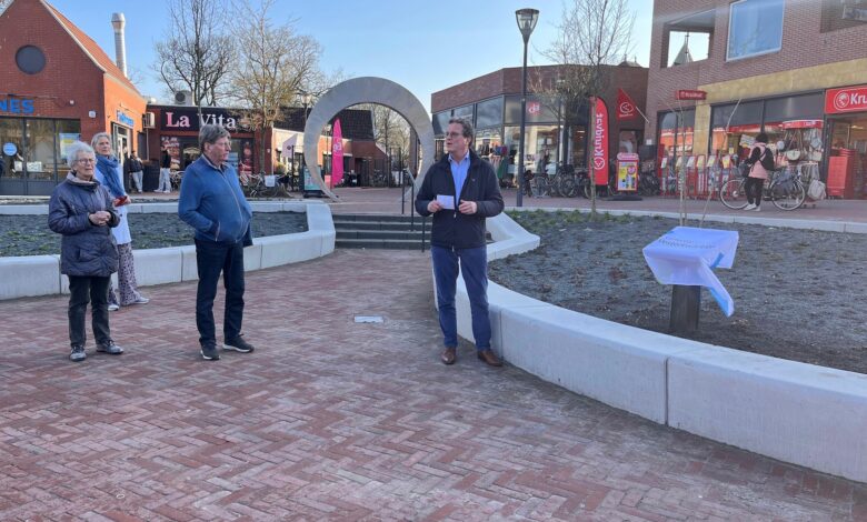 Zuidhorn – Gemeente Westerkwartier heeft de werkzaamheden voor het groener en aantrekkelijker maken van het centrum van Zuidhorn afgerond. Met deze afronding heeft de gemeente uitvoering gegeven aan haar Centrumvisie Zuidhorn en Klimaatadaptatieplan. Dinsdag 3 maart heeft wethouder Ruimtelijke Ordening Hans Haze deze mijlpaal gemarkeerd met de onthulling van een informatiebord over het watersysteem op de Overtuinen in Zuidhorn.