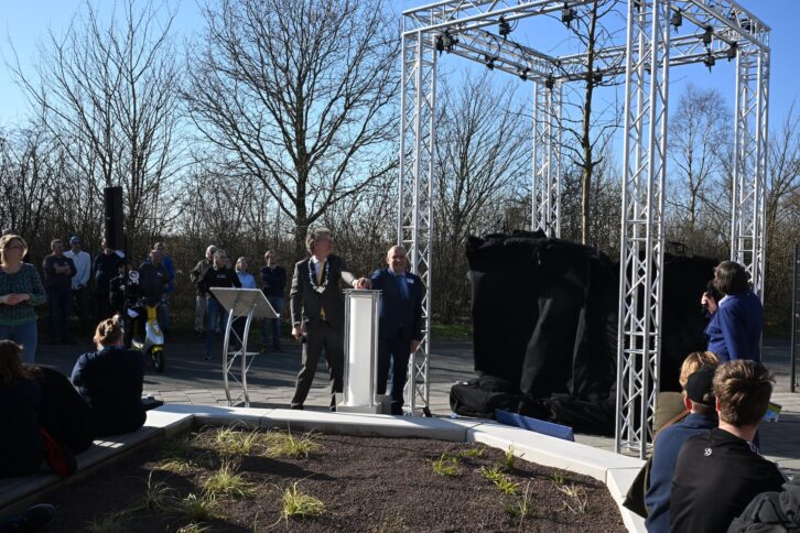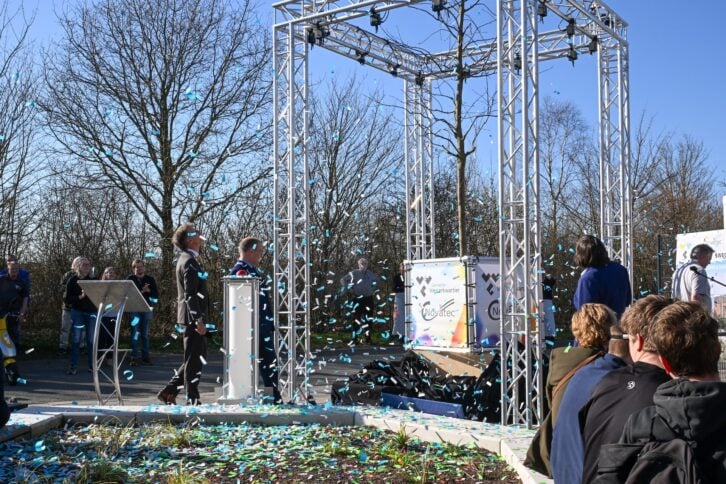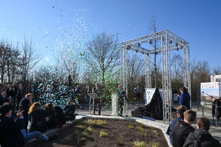 Burgemeester Van der Tuuk sprak tijdens de opening zijn trots uit over het gerealiseerde project, dat binnen de planning en het budget is afgerond. De openingsceremonie bestond uit een druk op de rode knop, de onthulling van een boom, muziek en confetti. De onthulde boom is een Zweedse meelbes van de ondersoort ‘Brouwers’, gekozen vanwege zijn rustige maar stevige groei, standvastigheid en veerkracht. Gemeentedichter Gerardo Insua Teijeiro droeg een gedicht voor en directeur Dirk Jan de Rouwe overhandigde namens Bouwgroep Dijkstra Draisma een cadeau. Na de openingshandeling startte het besloten medewerkersfeest.