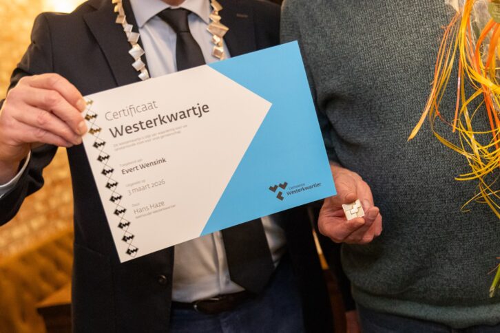 Marum – Op dinsdagavond 3 maart ontving Evert Wensink een Westerkwartje uit handen van wethouder Hans Haze.
