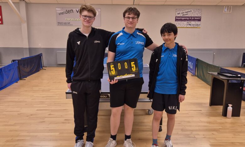 Team 5 had een moeilijke avond. Tegen DTTC’78 4 werd het 0-5. Tegen Reflex’65 3 was het spannender: Midas Zwart won één wedstrijd, maar uiteindelijk verloor het team met 2-3. Het tweede punt kwam via het dubbel.