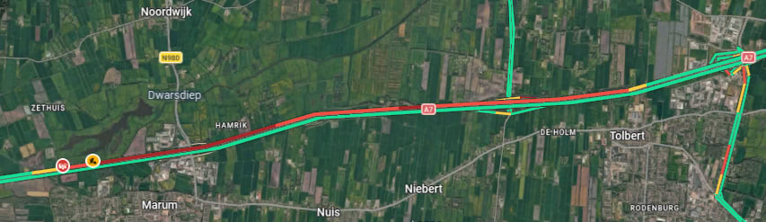 Frieschepalen/Leek – Op de A7 van Groningen richting Heerenveen is donderdagmiddag rond 16:13 uur een flinke verkeersopstopping ontstaan na een ongeval. Tussen Leek (afrit 34) en Frieschepalen (afrit 31) staat het verkeer momenteel stil.