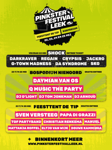 Leek – De line-up van Pinksterfestival Leek in de feesttent naast de kermis en het bos bij Podium Nienoord begint steeds meer vorm te krijgen. Eerder maakte de organisatie al de eerste namen bekend tijdens fase 1 van het programma. Daarbij werd onder andere zanger Sven Versteeg aangekondigd, die inmiddels een bekende naam is binnen de Nederlandstalige feestmuziek.