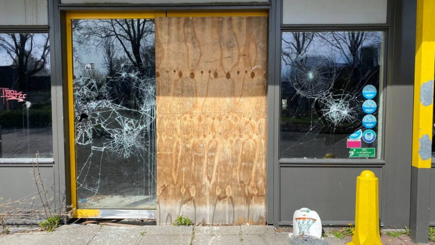 Leek – Het voormalige Jumbo-pand aan de Nijenoertweg/Waezenburglaan in Leek staat al twee jaar leeg en wordt inmiddels regelmatig doelwit van vandalen. Meerdere ramen zijn ingegooid en de schade aan het pand neemt met de dag toe, aldus enkele omwonenden tegenover InfoLeek.
