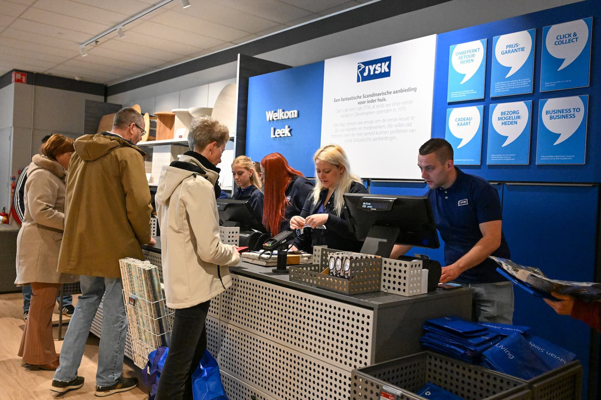 Leek – Woensdagochtend 15 april opende JYSK de deuren van haar nieuwe winkel in Leek, op de locatie aan het Groot Winkelplein waar voorheen Leen Bakker gevestigd was. Na de officiële openingshandeling rond negen uur, bezochten tientallen klanten de hagelnieuwe winkel.