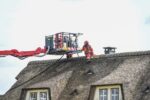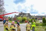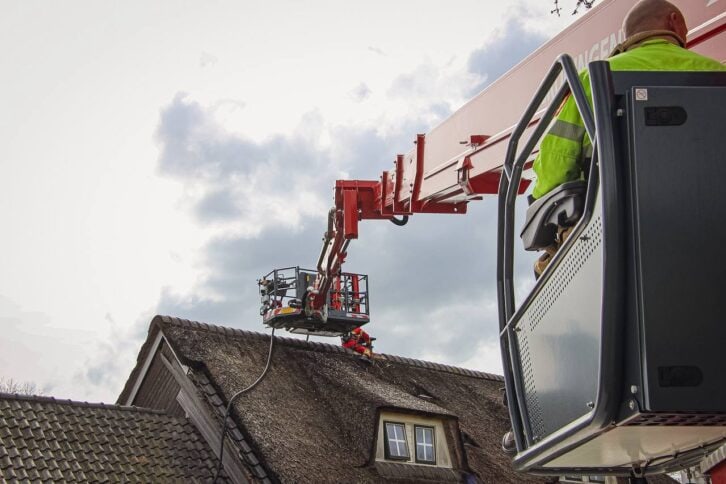 Met een hoogwerker ging de brandweer het dak op om delen van de rietenkap te verwijderen en de brand grondig na te kunnen blussen. De politie sloot de weg ter plaatse af vanwege de bluswerkzaamheden.