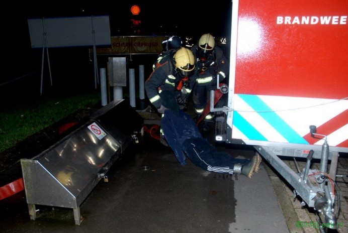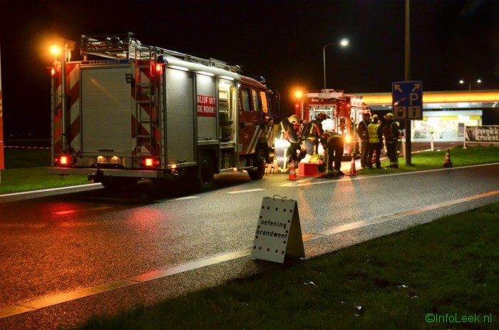 Vervolgens werd er ook nog een auto aangetroffen, waarvan de eigenaar vergeten was de slang af te koppelen na het tanken van LPG. Gelukkig bleek na meting dat er geen al te hoge concentratie’s gas waren gemeten en dat de veiligheidsklep afgesloten was. Het derde onderdeel was een partij illegaal gedumpte vaten met daarin chemische stoffen. Dit moest eerst onderzocht worden door brandweermannen met chemiepakken aan en vervolgens veilig gesteld worden. Tijdens de oefening was het tankstation afgesloten voor het overige verkeer ivm de veiligheid.