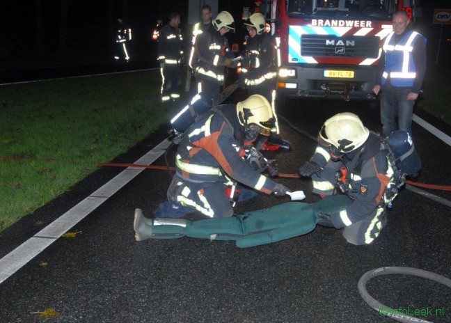 Intussen was ook de bevelvoerder van de brandweer die inmiddels was gearriveerd, geïnformeerd wat er was voorgevallen. Bij een tankwagen werd het eerste slachtoffer aangetroffen die half in een plas brandstof lag wat de tankwagen aan het lossen was. Dit slachtoffer werd hier vakkundig weggehaald, waarna hem letterlijk de kleren van het lijf werden geknipt. Nadat het slachtoffer was onderzocht en schoon gemaakt was werd hij overgebracht naar Nij Smellinghe in Drachten.