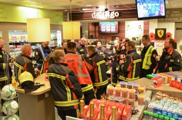 Nadat alle materialen weer ingepakt waren is er onder het genot van een bakje koffie de oefening doorgesproken. De oefening werd door de brandweer van Leek alsmede het personeel van het tankstation als zeer nuttig ervaren!