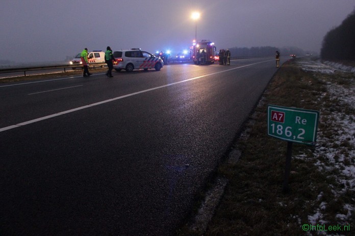 LEEK – De A7 is zaterdagmorgen ter hoogte van Leek afgesloten geweest na een ongeval. Bij het ongeval zijn meerdere auto’s betrokken en ook meerdere gewonnen gevallen waarvan twee ernstig.