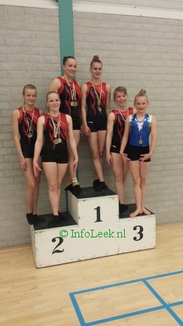 In de tweede wedstrijd was het de beurt aan Renée Haan, Indy Gjaltema, Alinda Cazemier, Rosanne de Vries en Danique Huisjes. Indy en Alinda mochten op sprong de gouden en zilveren medaille in ontvangst nemen en Renée wist met een goed uitgevoerde oefening tweede te worden op het onderdeel brug helaas viel Rosanne de Vries niet in de prijzen. Danique Huisjes mocht op de onderdelen sprong en brug de zilveren en bronzen medaille in ontvangst nemen en was erg tevreden.