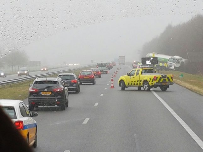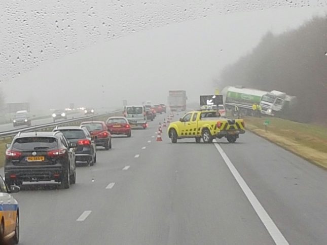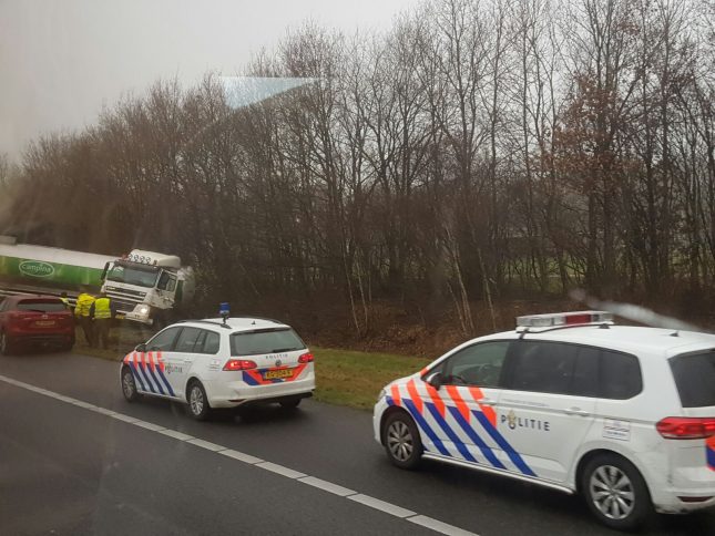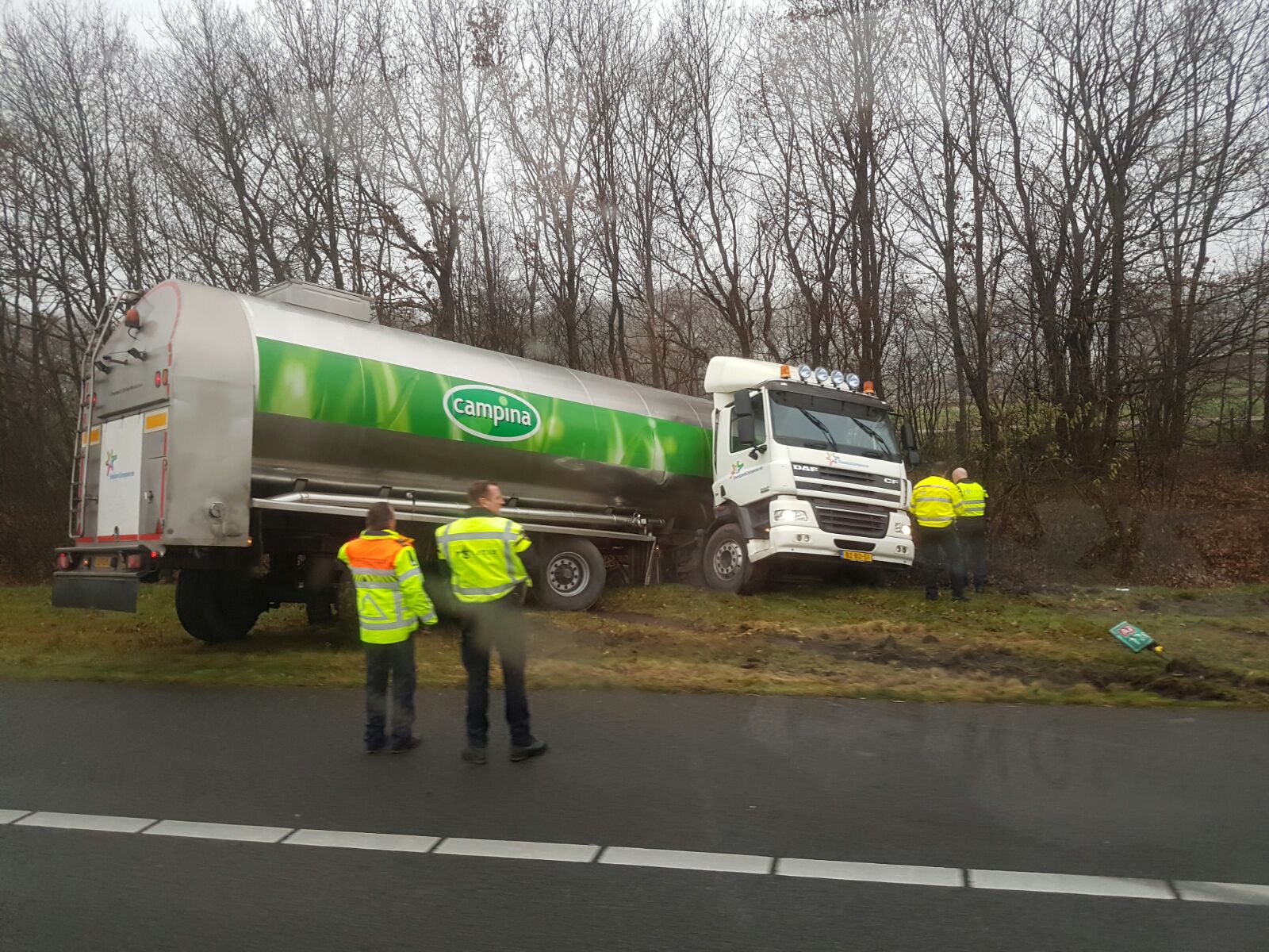 FRIESCHEPALEN – Op de A7 net voor afslag Frieschepalen richting Drachten is een lege melkauto van de weg geraakt en in de berm beland.