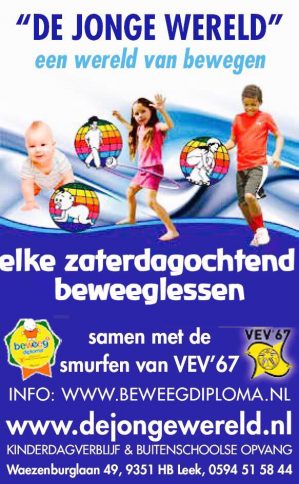 LEEK – Vanaf december geeft De Jonge Wereld beweeglessen gecombineerd met voetbal bij het complex van VEV’67. Kinderen én de ouders zijn super enthousiast. In de beweeglessen worden alle grondvormen van bewegen aangeboden, maar ook oefeningen met de bal.