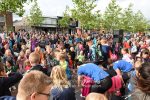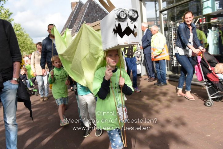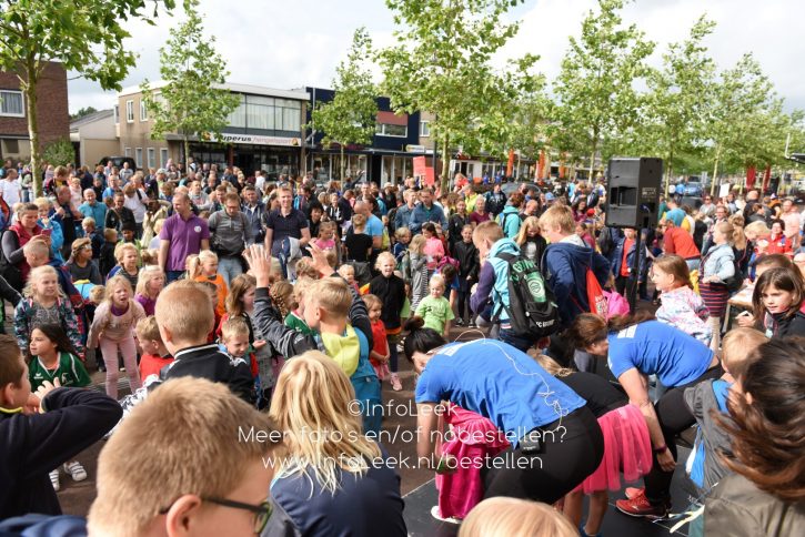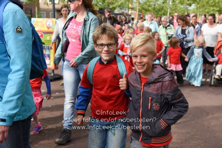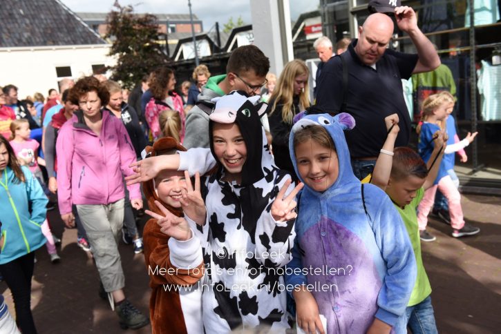 Nadat iedereen in het bezit was van een medaille liep men in een stoet achter muziekvereniging aan door de Tolberterstraat waar vele ouders en familieleden de wandelaars ontvingen met een applaus en bloemetjes. Bij de finishboog stond DJ Nick van Putten gezellige muziek te draaien waar de vele kinderen dan ook op wisten te dansen. De prijs van mooist verkleedde kinderen ging vanavond naar De Regenboog!