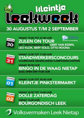 LEEK/NIETAP – De LeekWeek komt er weer aan, dit jaar is het van woensdag 30 augustus t/m zaterdag 2 september.
